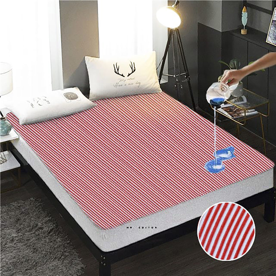 Terry Cotton Waterproof Mattress Protector - Red Stripe
