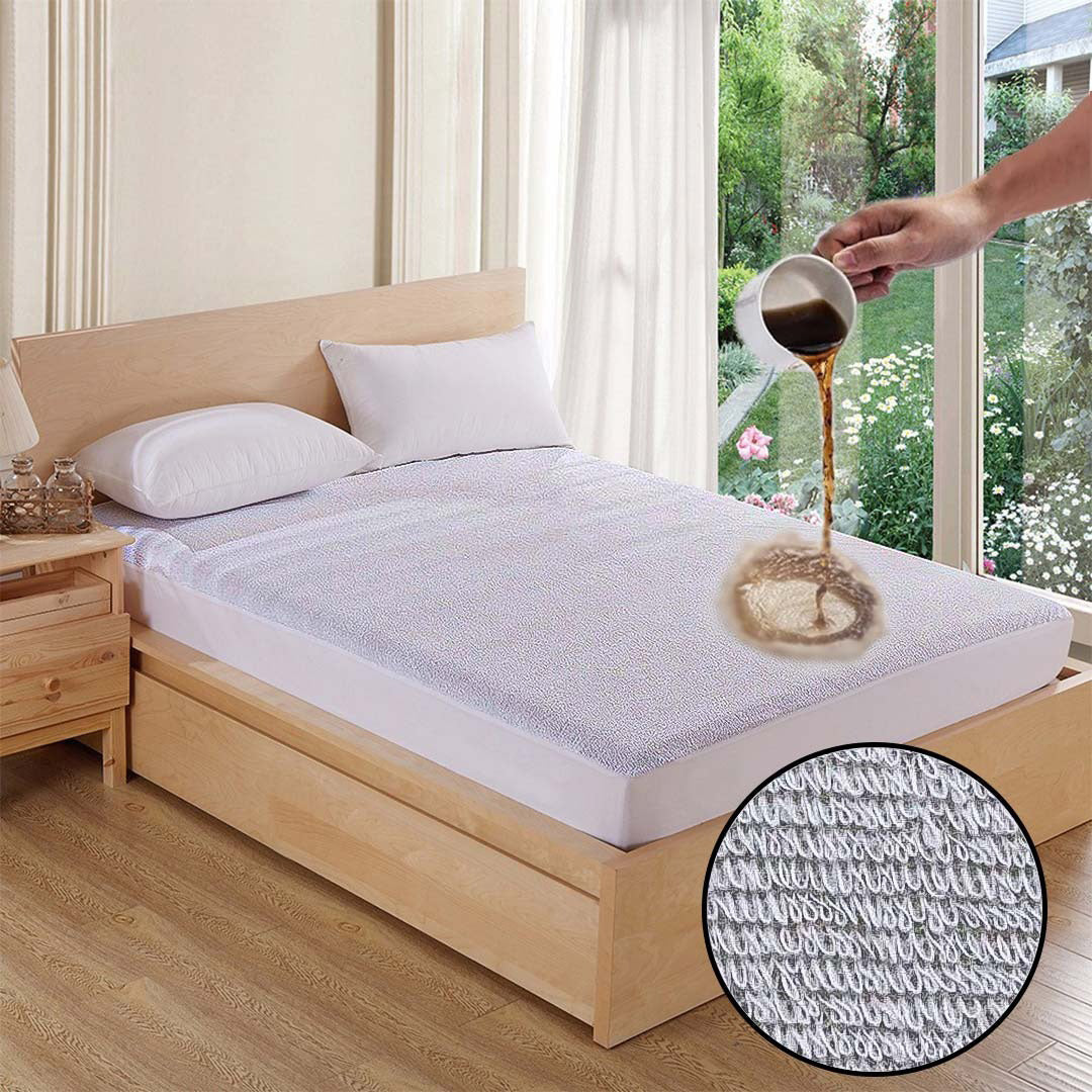 Terry Cotton Waterproof Mattress Protector White Color Fitted Style