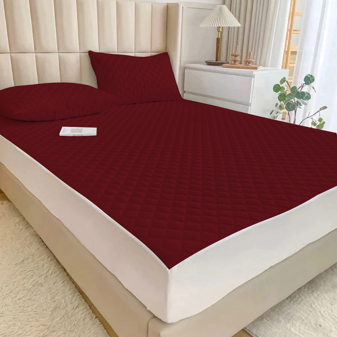 Ultrasonic 100% Waterproof Mattress Cover For Double Bed Fitted Mattress Protector Anti Sleep Bed Sheet (Maroon)